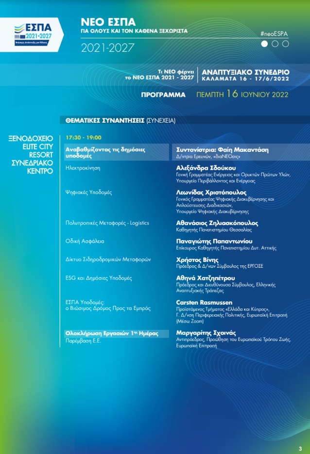 Ακολουθεί το πρόγραμμα του Αναπτυξιακού Συνεδρίου: