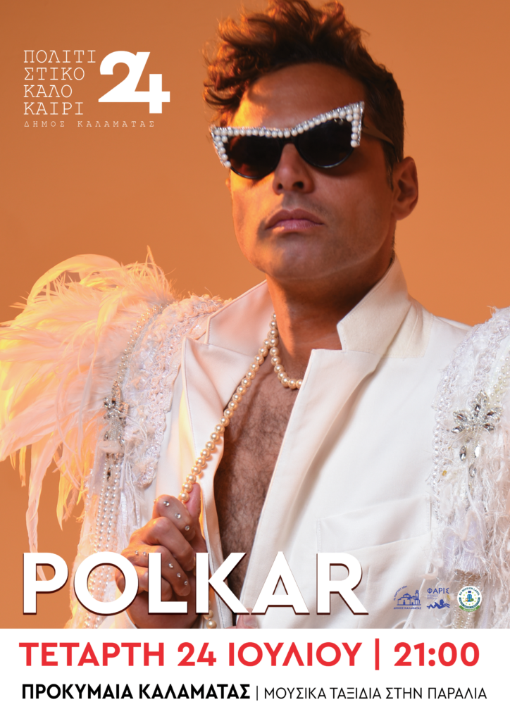 Συναυλία με το συγκρότημα ‘’Polkar’’ στο πλαίσιο των εκδηλώσεων «Πολιτιστικό Καλοκαίρι 2024», που διοργανώνει ο Δήμος Καλαμάτας και η Κ.Ε.ΦΑΡΙΣ, θα πραγματοποιηθεί την Τετάρτη (24 Ιουλίου 2024) στις 21.00, στην Προκυμαία του Λιμένα Καλαμάτας