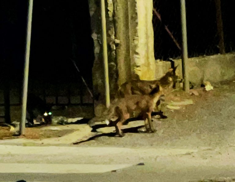 Στο βίντεο και τη φωτογραφία, που μας έστειλε αυτόπτης μάρτυρας, φαίνονται τα τσακάλια, μπροστά από το Κληροδότημα «Παναγιώταρου» το βράδυ του περασμένου Σαββάτου.
