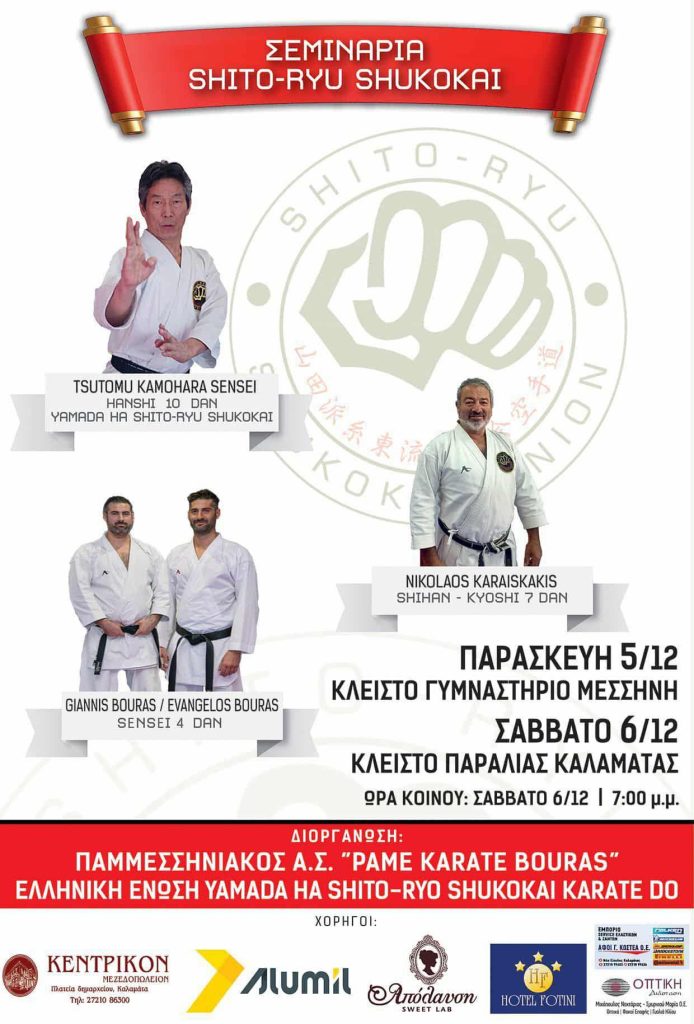 Ο Παμμεσσηνιακός Αθλητικός Σύλλογος Καράτε θα πραγματοποιήσει διήμερο σεμινάριο, την Παρασκευή και το Σάββατο (6-7 Δεκεμβρίου 2025) με τον διεθνούς φήμης Ιάπωνα δάσκαλο της Παγκόσμιας Ένωσης Yamada Ha Shito Ryu Shukokai Karate Do, Sensei Hansi Tsutomu Kamohara (10 DAN).