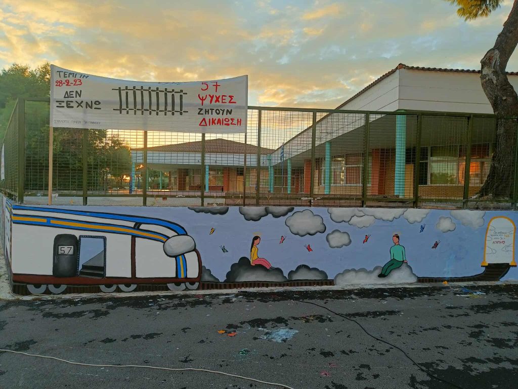 Η Σταυρούλα Βασιλοπούλου, μαθήτρια του 3ου Γυμνασίου, αναφέρθηκε στη δημιουργία του γκράφιτι στον χώρο του σχολείου με θέμα την τραγωδία των Τεμπών. Το συγκεκριμένο έργο που ήταν και η αφορμή για την εκδήλωση είχε σκοπό αφενός να αναδείξει το ζήτημα της δικαίωσης των θυμάτων και να ευαισθητοποιήσει συλλογικά γι’ αυτό και αφετέρου να μεταδώσει ένα μήνυμα ελπίδας για το μέλλον που πάντα πρέπει να αναζητούμε, ακόμα και μετά από μια τέτοια τραγωδία.