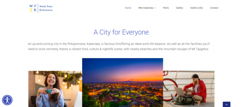 Επιπλέον, μέσα από το διαδικτυακό portal, οι ψηφιακοί νομάδες έχουν άμεση πρόσβαση σε πλούσιο φωτογραφικό υλικό που αποτυπώνει τη μοναδική φυσική ομορφιά της Καλαμάτας, αλλά και τα πολυεπίπεδα πλεονεκτήματα της πόλης που τους καλεί να τους φιλοξενήσει, ενώ διαθέτει ένα σύγχρονο περιβάλλον ειδικά υλοποιημένο για άτομα με αναπηρία.