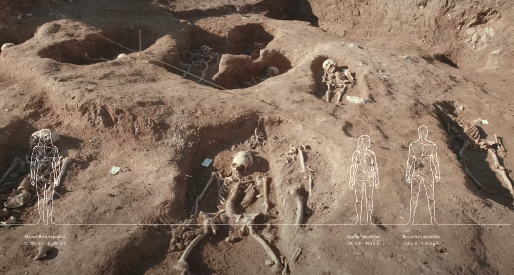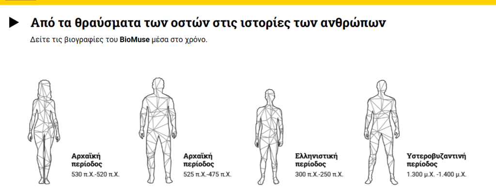 Κεντρική ιδέα της έκθεσης αποτελεί η αφήγηση «ατομικών βιογραφιών» όπως αυτές προέκυψαν από τη μελέτη των σκελετικών καταλοίπων πραγματικών ανθρώπων που έζησαν στον Ελλαδικό χώρο από τη Μεσολιθική εποχή έως τους Βυζαντινούς χρόνους. Επιχειρείται η ανασύσταση όψεων της καθημερινής τους ζωής, της διατροφής και της γενετικής τους ιστορίας, μέσα από σύγχρονα φυσικά και ψηφιακά μέσα, μεταξύ των οποίων, οπτικοακουστική παραγωγή και διαδραστική εφαρμογή σε επαυξημένη πραγματικότητα.