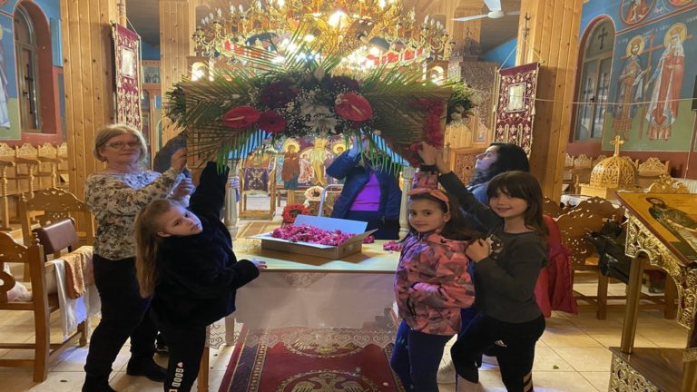 Αριστερά και δεξιά του Επιταφίου Σώματος του Ιησού, υπάρχουν λουλούδια τα οποία θα μοιράσει ο Ιερέας, μετά την ολοκλήρωση της περιφοράς, ευχόμενος Καλή Ανάσταση!