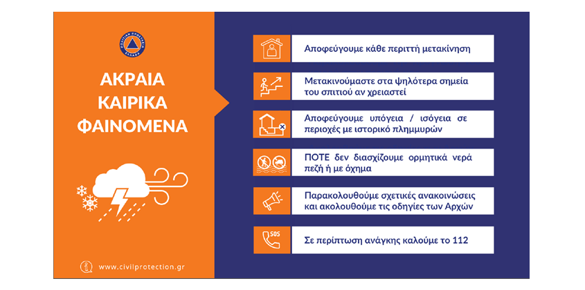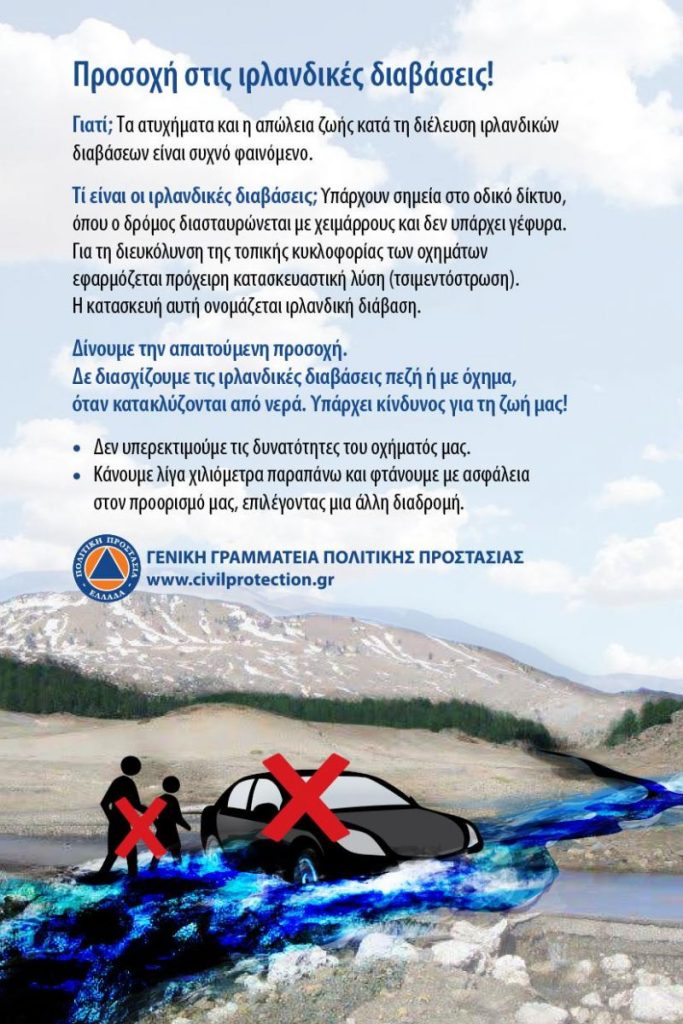 - Αποφύγετε τους πλημμυρισμένους δρόμους.
