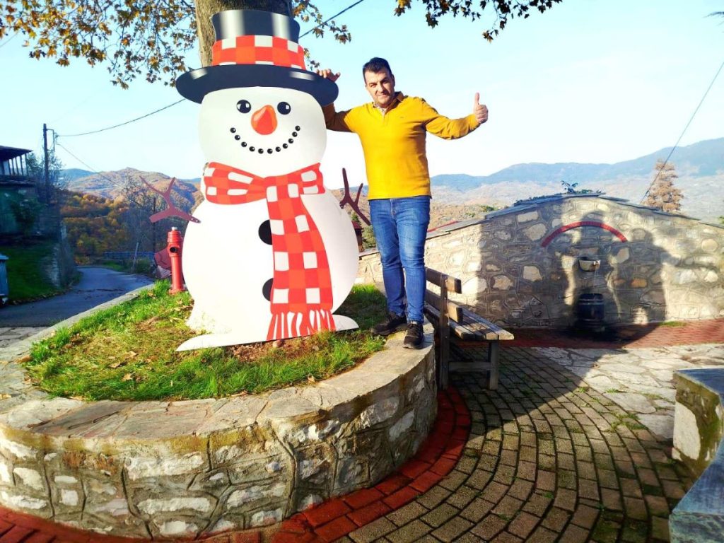 Επίσης, μας κρατάει συντροφιά ένας γιγάντιος, χαμογελαστός χιονάνθρωπος που στέκεται περήφανος στο κέντρο της πλατείας, υποδεχόμενος όλους τους επισκέπτες μας με τον πιο γλυκό τρόπο!”