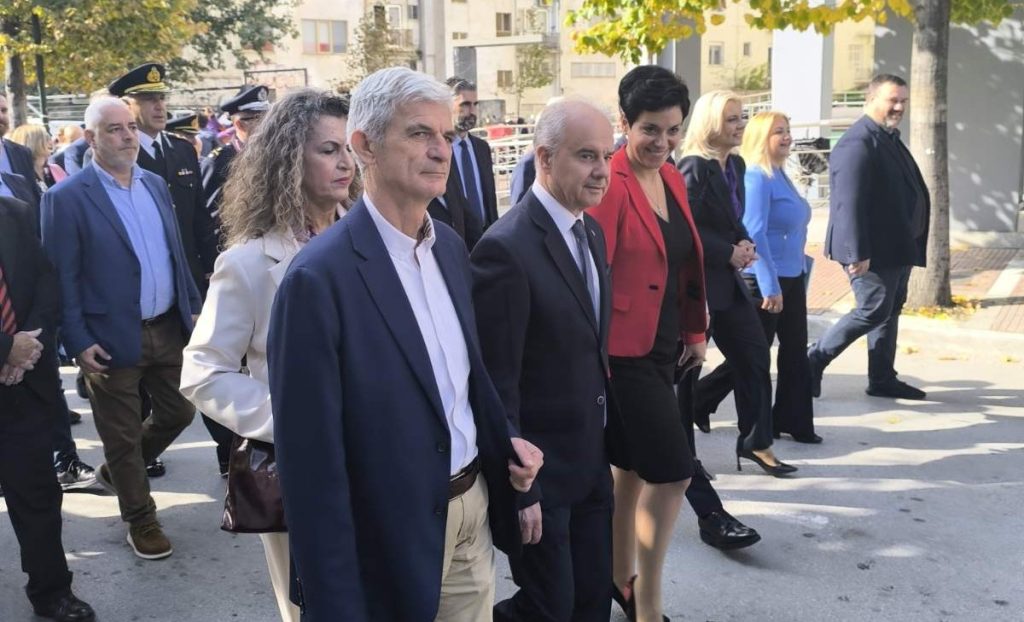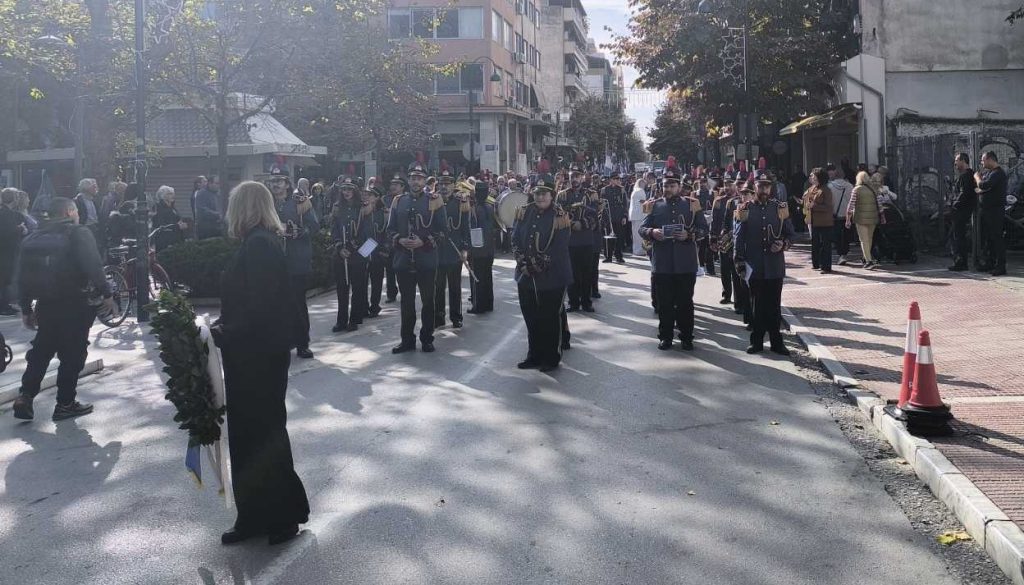 Στις 11 το πρωί μαθητές σχολείων της Α/θμιας και Β/θμιας εκπαίδευσης, εκπρόσωποι αρχών και φορέων, καθώς και πολίτες, συγκεντρώθηκαν μπροστά από το Δημαρχείο της Λάρισας και με τη Φιλαρμονική του Δήμου να προηγείται, μετακινήθηκαν προς το Ηρώο της πόλης.