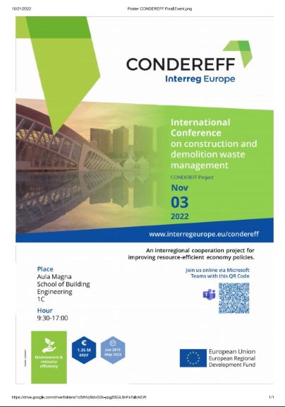 Πραγματοποιείται στις 3 Νοεμβρίου 2022 το υβριδικό διεθνές συνέδριο του ευρωπαϊκού προγράμματος Condereff- Interreg Europe, με θέμα την επαναχρησιμοποίηση δομικών υλικών που προέρχονται από κατεδαφίσεις και εκσκαφές.