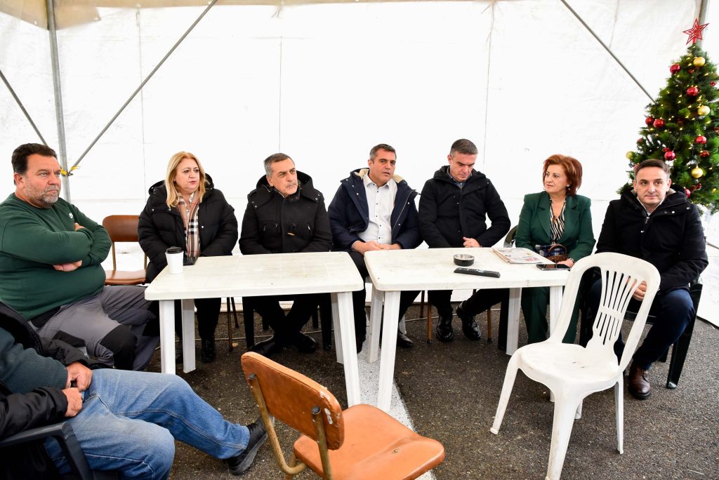 Οι αγρότες υποδέχθηκαν με θερμά λόγια τον Περιφερειάρχη, ευχαριστώντας τον για τη στήριξη που έχει δείξει στον αγώνα τους από την πρώτη ημέρα των κινητοποιήσεων.