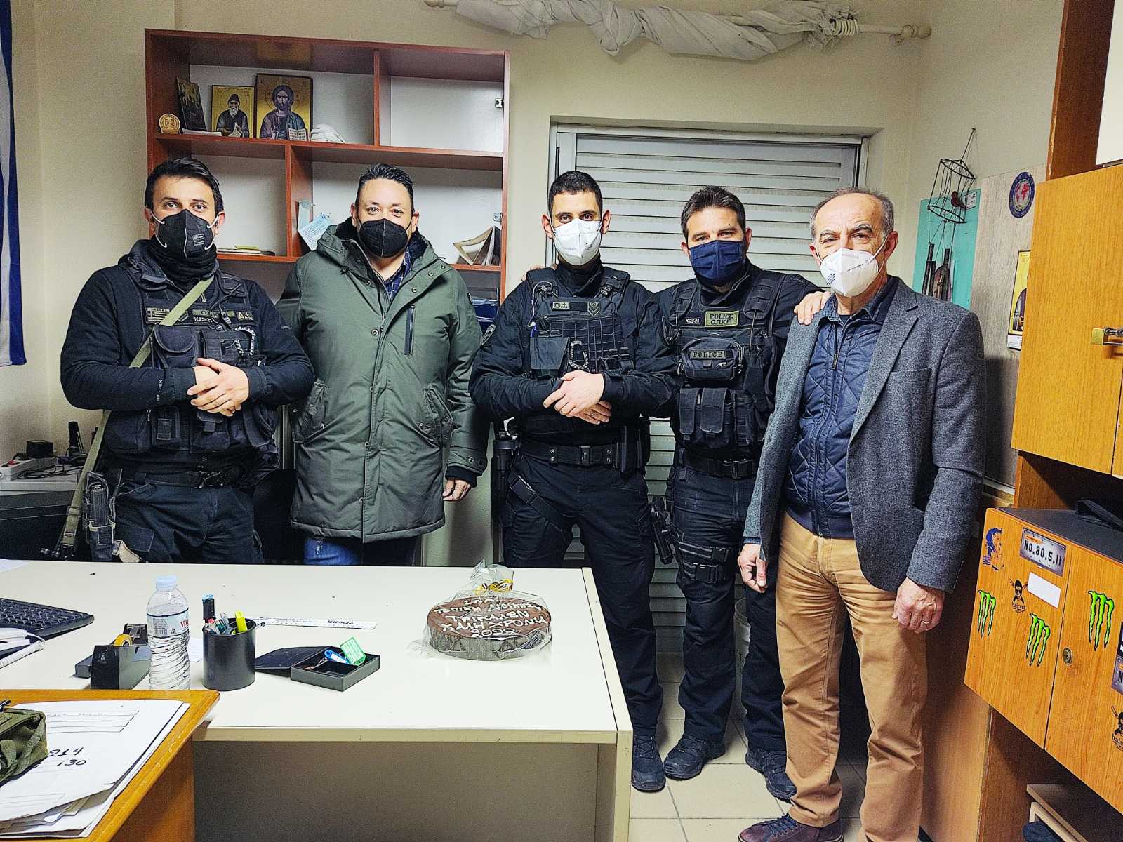 Στα Τρίκαλα, για άλλη μια χρονιά, μέλη του Δ.Σ. της Διεθνούς Ενώσεως Αστυνομικών της Τοπικής Διοίκησης Τρικάλων (Ι.Ρ.Α.), επισκέφθηκαν την παραμονή της πρωτοχρονιάς, κατά την ανάληψη της υπηρεσίας τους, σχεδόν όλες τις Υπηρεσίες και τις Ομάδες (ΟΠΚΕ- ΔΙ.ΑΣ.) της Δ.Α. Τρικάλων, λαμβάνοντας όλα τα απαραίτητα μέτρα προστασίας και αντάλλαξαν ευχές με όλους του συναδέλφους, που η αλλαγή του χρόνου θα τους βρει στο καθήκον, μακριά από τις οικογένειες και τα αγαπημένα τους πρόσωπα.