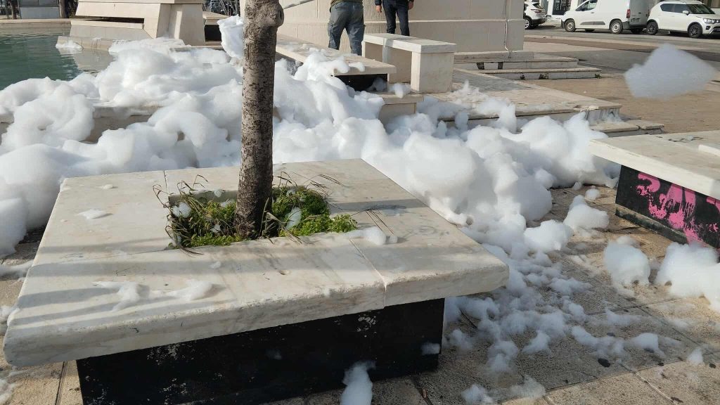 Όσοι βρέθηκαν στο σημείο έσπευσαν να φωτογραφηθούν ή να κάνουν ένα βίντεο με φόντο τη “σαπουνάδα” του συντριβανιού. Ωστόσο, συνεργείο του Δήμου σταμάτησε τη λειτουργία στους πίδακες και με τη χρήση κατάλληλου εξοπλισμού, απομάκρυνε την τεράστια ποσότητα αφρού.