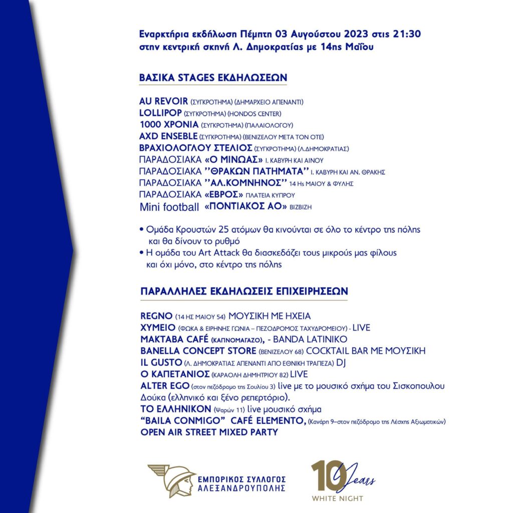 Τα 10 χρόνια λειτουργίας της Λευκής Νύχτας γιορτάζει φέτος ο Εμπορικός Σύλλογος Αλεξανδρούπολης