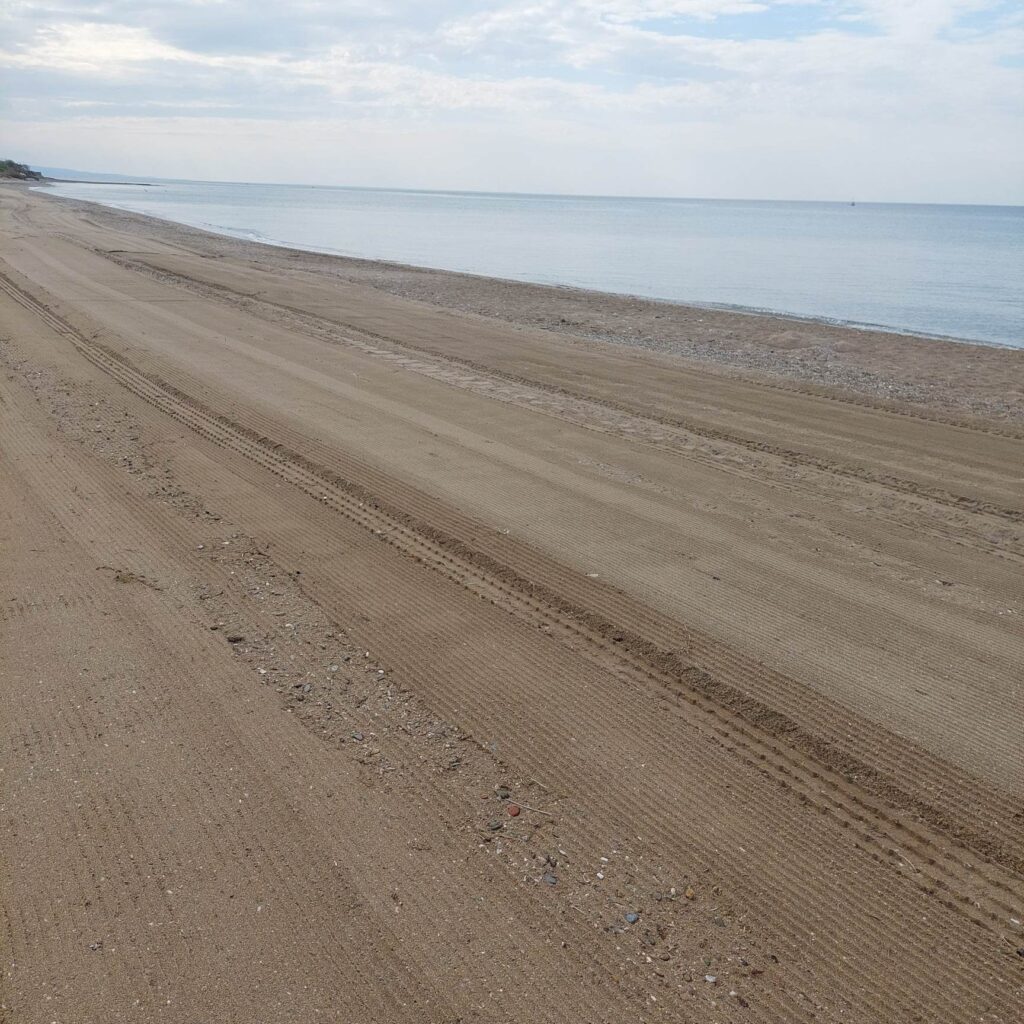 Ήδη έχει ολοκληρωθεί η προεργασία που αφορούσε την ισοπέδωση των ακτών και τώρα ειδικά μηχανήματα θα καθαρίσουν σε βάθος όλες τις παραλίες από τα φερτά υλικά, (πέτρες, ξύλα, φύκια και κάθε λογής σκουπίδια) παραδίδοντας ένα θεαματικό αποτέλεσμα στους λουόμενους, μερικοί από τους οποίους ξεκίνησαν ήδη τα μπάνια τους.