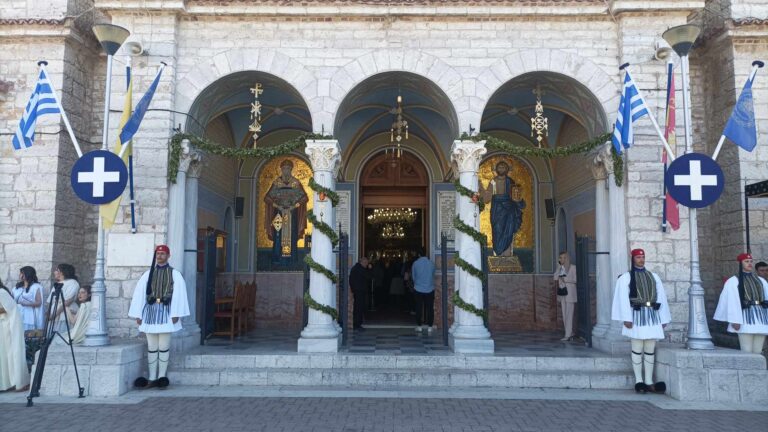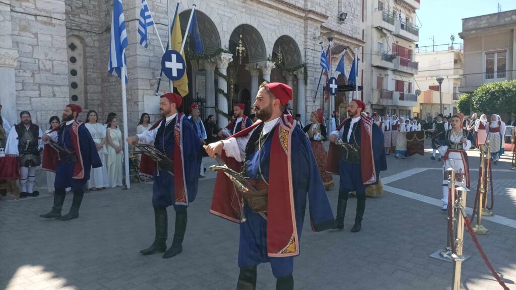 Το πρωί τελέστηκε θεία λειτουργία στον Μητροπολιτικό Ναό του Αγίου Σπυρίδωνος, προεξάρχοντος του Μητροπολίτη Ελασσόνος Χαρίτωνος και συλλειτουργούντων των Μητροπολιτών Σισανίου και Σιατίστης Αθανασίου και Αιτωλίας και Ακαρνανίας Δαμασκηνού. Ακολούθησε δοξολογία, χοροστατούντος του Μητροπολίτη Αιτωλίας και Ακαρνανίας Δαμασκηνού και στη συνέχεια ξεκίνησε πομπή από τον Μητροπολιτικό Ναό του Αγίου Σπυρίδωνος και μετάβαση στον Κήπο των Ηρώων, όπου εψάλη τρισάγιο στους αθάνατους νεκρούς.