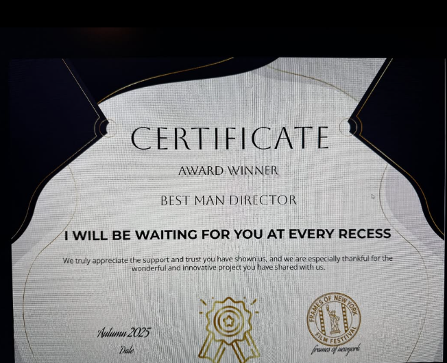 «Είμαστε στην ευχάριστη θέση να σας ανακοινώσουμε ότι η ταινία μας βραβεύτηκε με το πρώτο βραβείο καλύτερου σκηνοθέτη στο φεστιβάλ frames of new York. Το ταξίδι μας συνεχίζεται, μένοντας προσηλωμένοι απόλυτα στο στόχο μας που δεν είναι άλλος από την διάδοση του μηνύματος αλληλεγγύης στα πέρατα της γης. Εάν καταφέρουμε η ταινία μας να ανακουφίσει έστω και ένα συνάνθρωπο μας, να δώσουμε κουράγιο κι ελπίδα σε όσους μάχονται, τότε και μόνο τότε, θα έχουμε πετύχει. Ευχαριστούμε όσους πιστεύουν στην προσπάθεια μας», ανέφερε.