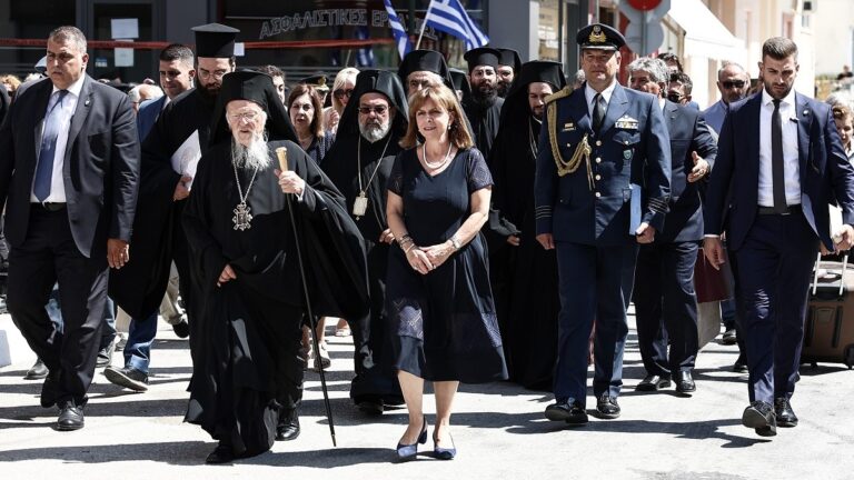 Μιλώντας για τον Οικουμενικό Πατριάρχη Βαρθολομαίο, η Κατερίνα Σακελλαροπούλου σημείωσε, απευθυνόμενη προς τον δήμαρχο, ότι «είναι μεγάλη τιμή για μένα να με συμπεριλάβετε στους δημότες σας και μάλιστα από κοινού με τον Οικουμενικό Πατριάρχη Βαρθολομαίο, μια λαμπρή προσωπικότητα που έχει κερδίσει τον σεβασμό όχι μόνο των συμπατριωτών μας, αλλά ολόκληρου του κόσμου».