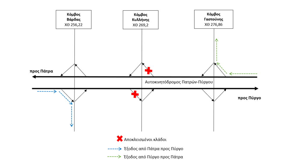 Η κυκλοφορία, για το διάστημα αυτό, θα εξυπηρετείται από τους γειτονικούς κόμβους της Βάρδας (Χ.Θ. 256,22) και της Γαστούνης (Χ.Θ. 276,86). Διευκρινίζεται πως οι κλάδοι εισόδου στον αυτοκινητόδρομο του Α/Κ Κυλλήνης, θα λειτουργούν κανονικά.