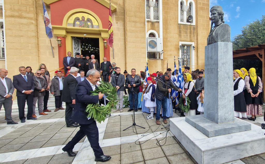 Ακολούθησε επιμνημόσυνη δέηση και κατάθεση στεφάνων στο Μνημείο του Οπλαρχηγού. Τον πανηγυρικό της ημέρας εκφώνησε η φιλόλογος Ευφροσύνη Λυμπέρη, η οποία με λόγο εμπνευσμένο και συγκινητικό τόνισε τη διαχρονική αξία της αυτοθυσίας και της ενότητας