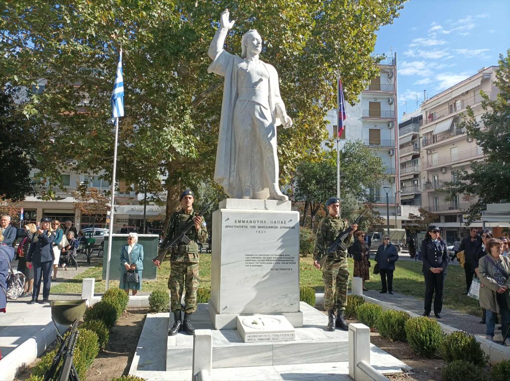 Στη συνέχεια στον ανδριάντα του Εμμανουήλ Παπά στην Πλατεία Ελευθερίας εψάλη επιμνημόσυνη δέηση και ακολούθησε κατάθεση στεφάνων.