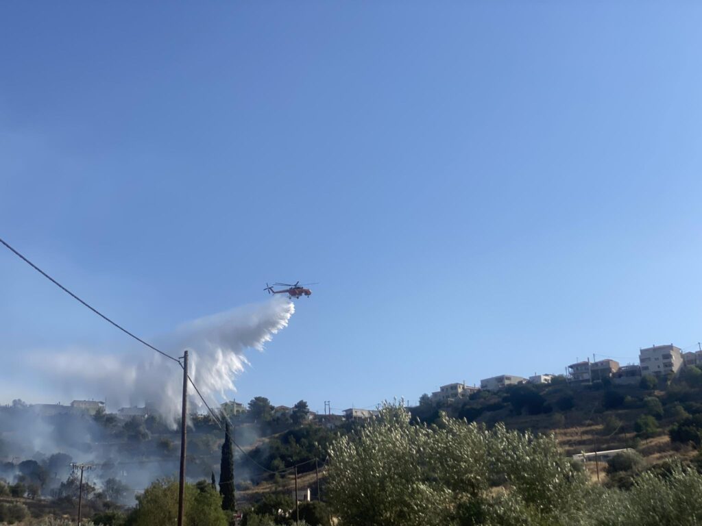 Επιχειρούν 22 οχήματα, 42 πυροσβέστες, 2 υδροφόρες, 10 ελικόπτερα, με τις δυνάμεις πυρόσβεσης να ενισχύονται συνεχώς.