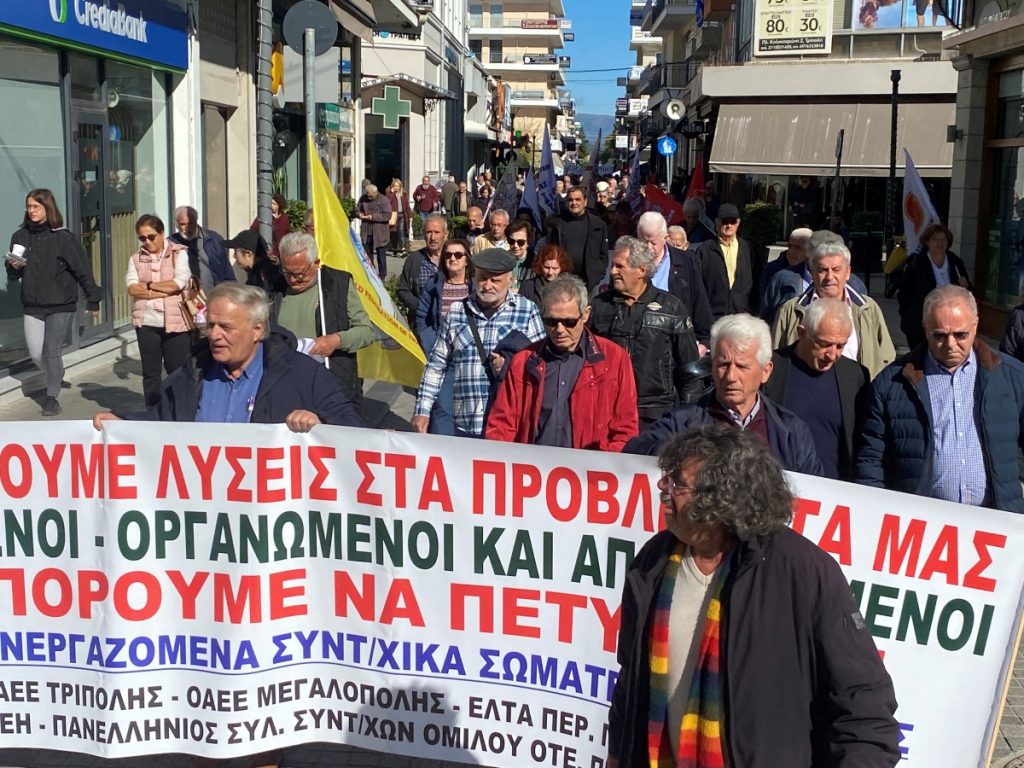 ” Απαιτούμε λύσεις στα προβλήματά μας, ενωμένοι, οργανωμένοι και αποφασισμένοι μπορούμε να πετύχουμε ”, έγραφε το κύριο πανό των συνεργαζόμενων συνταξιουχικών σωματείων της Αρκαδίας, που ηγήθηκε της πορείας. Αντιπροσωπείες συνταξιουχικών σωματείων από Μεσσηνία, Κορινθία, Άργος, Ναύπλιο, Λακωνία και Αρκαδία, διαδήλωσαν δυναμικά και αγωνιστικά, στην Τρίπολη και ζήτησαν απ΄ την Κυβέρνηση, να πάρει άμεσες αποφάσεις και να ικανοποιήσει τα αιτήματά τους. Ζήτησαν αυξήσεις σε όλες τις συντάξεις, στο ύψος του πληθωρισμού και κατώτερη σύνταξη στο 80 % του κατώτερου μισθού. Απαίτησαν άμεση ρύθμιση και άμεση απόδοση της 13ης και 14ης σύνταξης, άμεση καταβολή των αναδρομικών σε όλους τους συνταξιούχους, δίχως δικαστήρια κα προαπαιτούμενα, για το 11μηνο 2015 – 2016. Στάθηκαν στην προσωπική διαφορά και ζήτησαν την ενσωμάτωσή της στις καταβαλλόμενες συντάξεις, σ’ όλους τους συνταξιούχους, ενώ, αναφέρθηκαν και στο θέμα της εισφοράς αλληλεγγύης (ΑΚΑΓΕ).