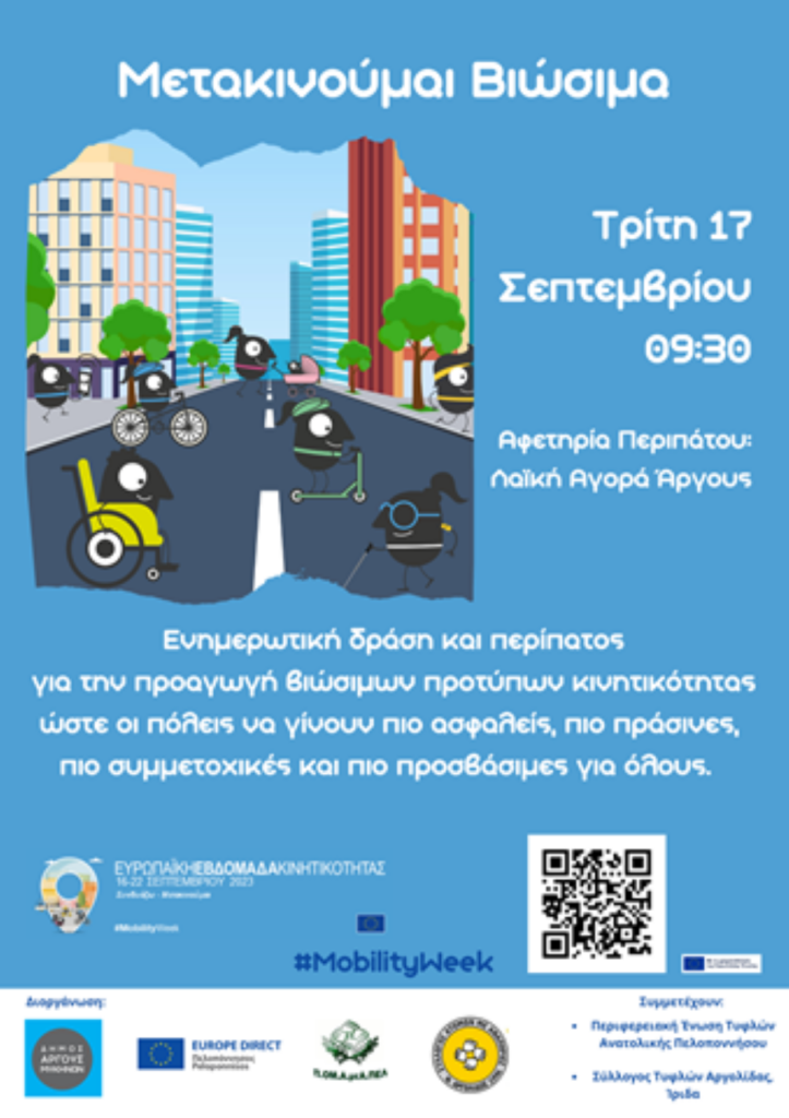 Ενημερωτική δράση και ένας βιωματικός περίπατος με τίτλο ”μετακινούμαι βιώσιμα’‘ θα γίνει στο Άργος, με αφορμή την Ευρωπαϊκή Εβδομάδα Κινητικότητας.