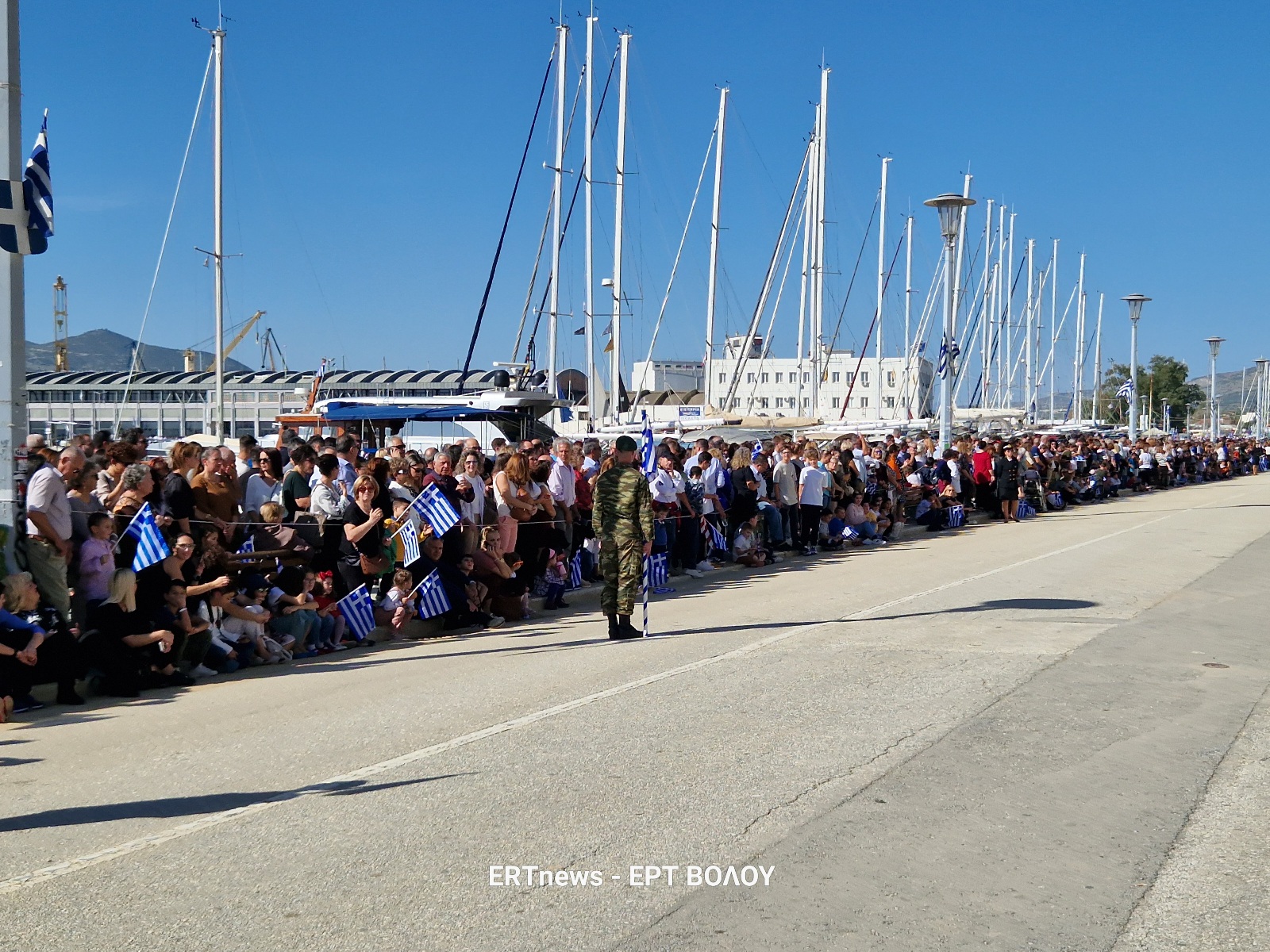 Χιλιάδες πολίτες παρακολούθησαν σήμερα, την παρέλαση για να τιμηθεί η εθνική επέτειος της 28ης Οκτωβρίου, στην παραλία του Βόλου, με σύμμαχο τον εξαιρετικό καιρό.