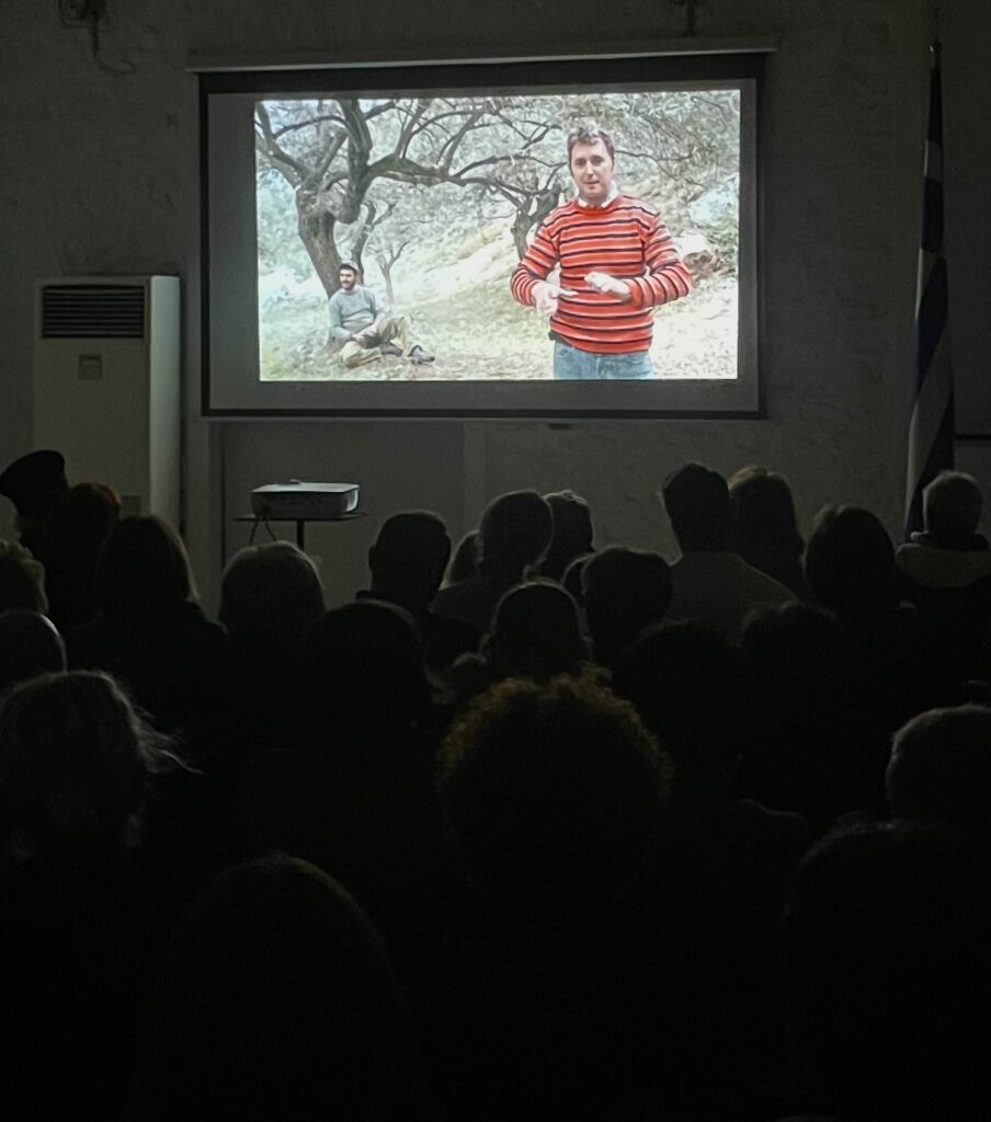 Η εκδήλωση πραγματοποιήθηκε στην αίθουσα εκδηλώσεων στο Μπούρτζι με θέμα την προβολή του ντοκιμαντέρ “Εγώ ασχολούμαι με το Ωραίον”, με κεντρική ομιλήτρια την δημιουργό-σκηνοθέτιδα του ντοκιμαντέρ, Λένα Βουδούρη. Η δημιουργός μίλησε για τα κίνητρα, τις πηγές έμπνευσης και τις προκλήσεις, που αντιμετώπισε κατά τη δημιουργία του έργου, ενώ ακολούθησε διάλογος με το κοινό. Μεταξύ άλλων και αιτιολογώντας τον τίτλο, που έδωσε στο ντοκιμαντέρ, ανέφερε ότι όταν ο Παπαδιαμάντης ρωτήθηκε για την διαμάχη καθαρεύουσας και δημοτικής απάντησε «Εγώ ασχολούμαι με το Ωραίον».