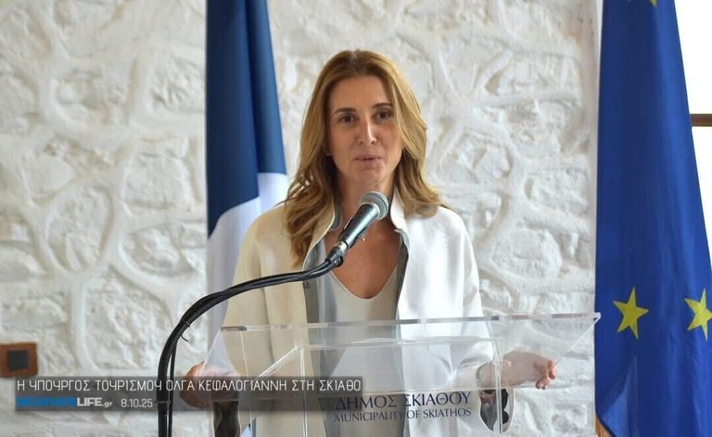 Τις πρωτοβουλίες και δράσεις του Υπουργείου Τουρισμού για ένα βιώσιμο μέλλον στον ελληνικό τουρισμό παρουσίασε η Υπουργός Τουρισμού Όλγα Κεφαλογιάννη, ως κεντρική ομιλήτρια στην εκδήλωση του Δήμου Σκιάθου με θέμα «Βιώσιμη Τουριστική Ανάπτυξη και Προστασία Περιβάλλοντος – η περίπτωση της Σκιάθου», που πραγματοποιήθηκε την Τετάρτη 8 Οκτωβρίου 2025.