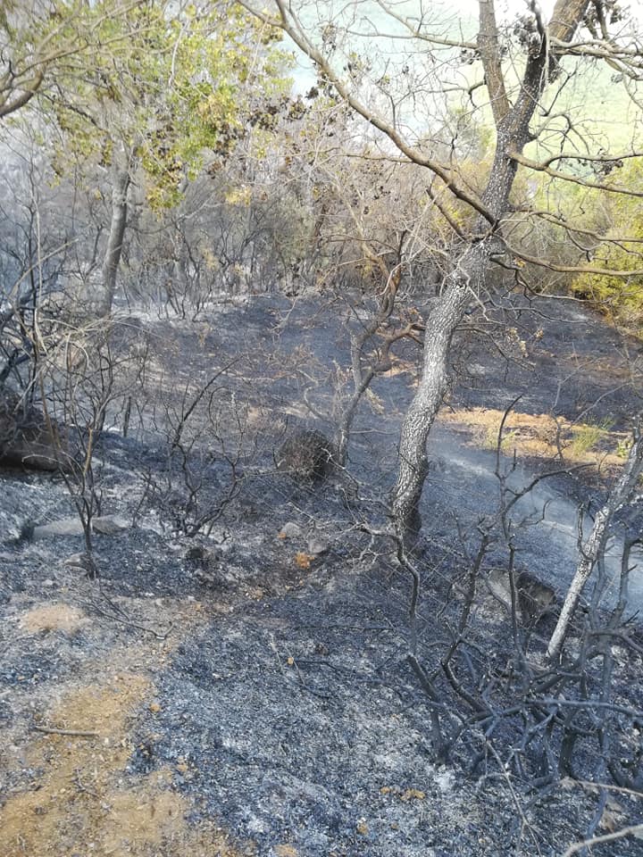 Ευτυχώς, οι ισχυροί άνεμοι που έπνεαν στην περιοχή και δυσχέραιναν το έργο της κατάσβεσης, άλλαξαν κατεύθυνση, καίγοντας βέβαια έκταση μεγαλύτερη των 300 στρεμμάτων με δρύες, πουρνάρια και χαμηλή βλάστηση.