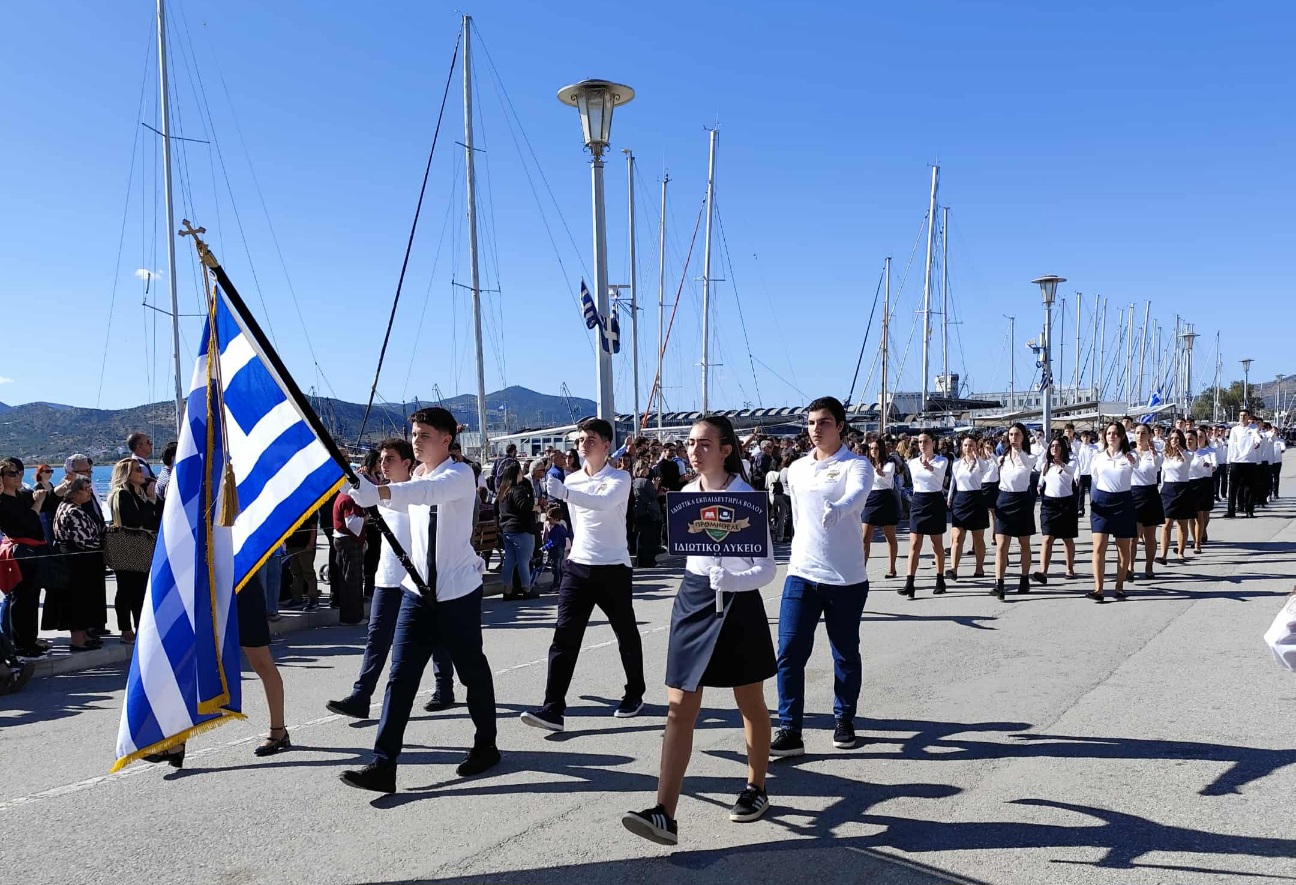 Σε εορταστικό κλίμα και υπό ιδανικές καιρικές συνθήκες πραγματοποιήθηκαν σήμερα οι εκδηλώσεις για την εθνική επέτειο της 28ης Οκτωβρίου στον Βόλο. Πλήθος κόσμου πλημμύρισε την παραλία της πόλης, όπου χιλιάδες πολίτες και επισκέπτες παρακολούθησαν την καθιερωμένη μαθητική και στρατιωτική παρέλαση.