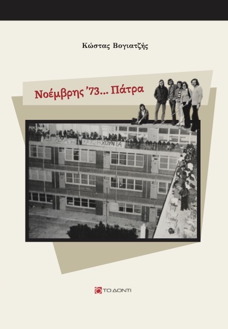 Ένα πολύ ενδιαφέρον βιβλίο για την αντιδικτατορική δράση στο Πανεπιστήμιο της Πάτρας παρουσιάζεται την Παρασκευή 27 Ιανουαρίου στο Βόλο. Ο τίτλος του είναι «Νοέμβρης ’73… Πάτρα» και κυκλοφορεί από τις εκδόσεις «Το Δόντι». Συγγραφέας του είναι ο μαθηματικός Κώστας Βογιατζής, δραστήριο μέλος του αντιδικτατορικού και μεταπολιτευτικού φοιτητικού κινήματος και της ανανεωτικής Αριστεράς.