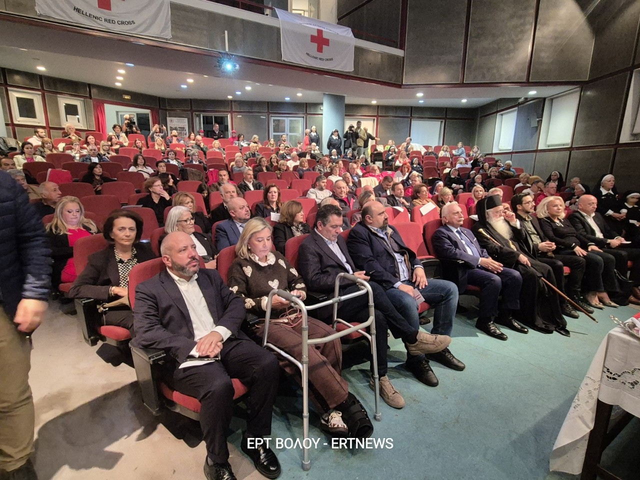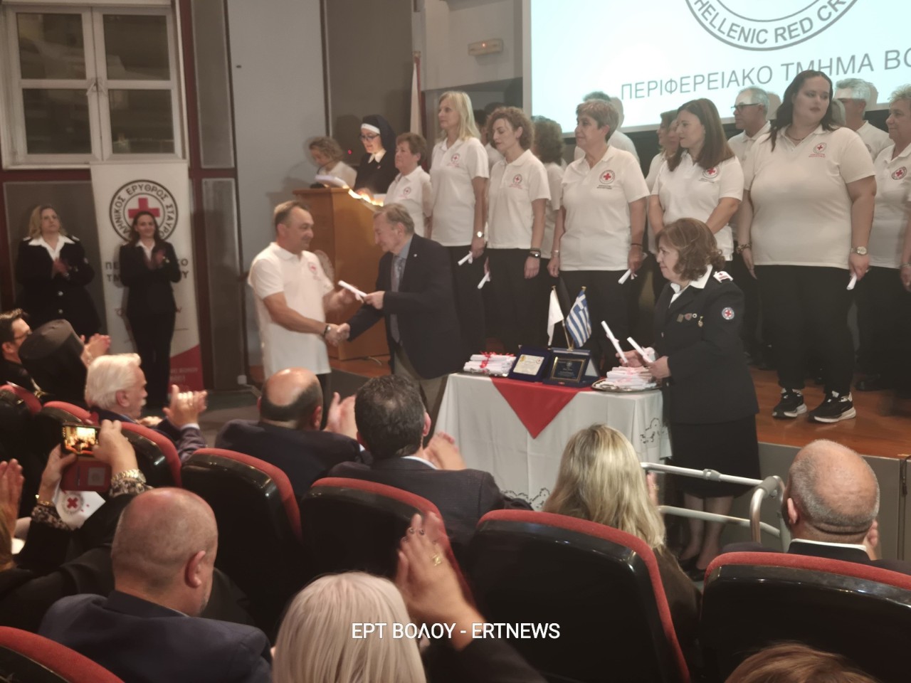 Από την πλευρά του, ο πρόεδρος του Τμήματος Βόλου, Δημήτρης Κουτρούμπας, ευχαρίστησε τον κεντρικό πρόεδρο για την παρουσία του, τονίζοντας ότι το τμήμα, ιδρυθέν το 1914, βρίσκεται στο 111ο έτος λειτουργίας του και έχει σταθεί παρόν σε κάθε κρίσιμη στιγμή της πόλης: πολέμους, σεισμούς, καταστροφές και, πρόσφατα, στις πλημμύρες που δοκίμασαν τη Μαγνησία. «Η σημερινή ημέρα είναι γιορτή για τους εθελοντές μας», δήλωσε, επισημαίνοντας τη διαρκή στήριξη της τοπικής κοινωνίας στο έργο του Ερυθρού Σταυρού.