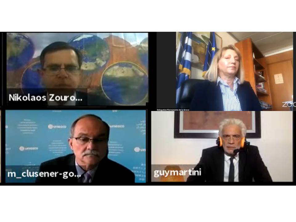 Στην έναρξη της εκδήλωσης χαιρετισμούς απηύθυναν οι Miguel Clüsener-God, Διευθυντής Οικολογικών και Γεωεπιστημών της UNESCO, ο Guy Martini, Πρόεδρος του Συμβουλίου που έχει την ευθύνη αξιολόγησης των Παγκόσμιων Γεωπάρκων UNESCO, και η Ελληνίδα Πρέσβης στην UNESCO, Μαρία Διαμαντοπούλου.