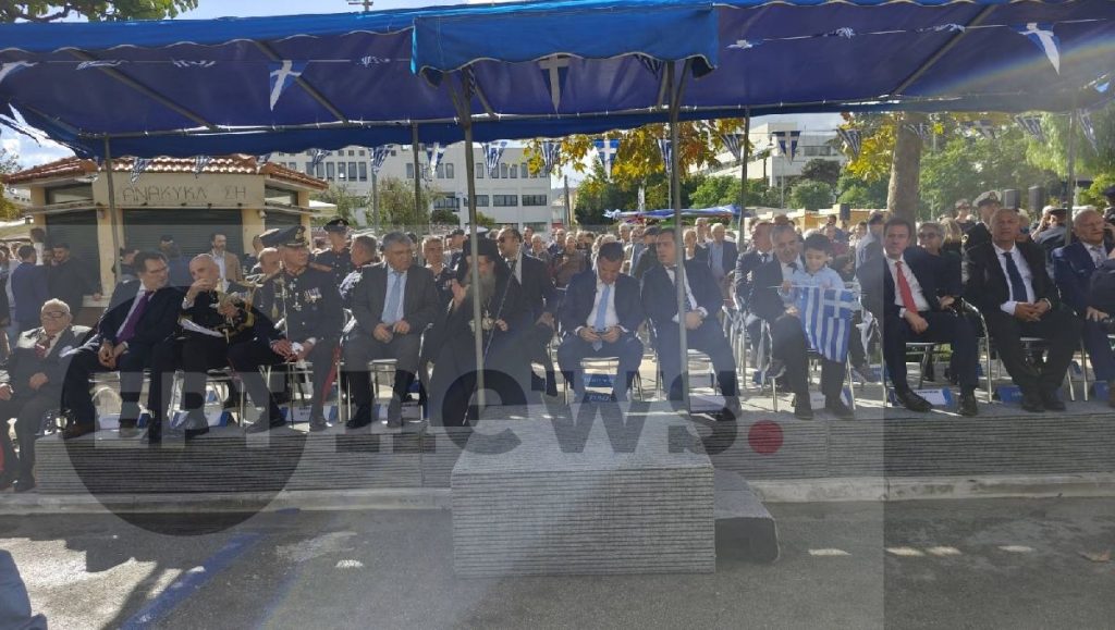 Να σημειωθεί ότι κατά τη διάρκεια της παρέλασης των μαθητικών τμημάτων Γυμνασίων και Λυκείων, στην εξέδρα δίπλα στον κ. Γεωργιάδη, πήρε θέση για την απόδοση τιμών η Διευθύντρια της Δευτεροβάθμιας Εκπαίδευσης Ευτυχία Βλυσίδου.