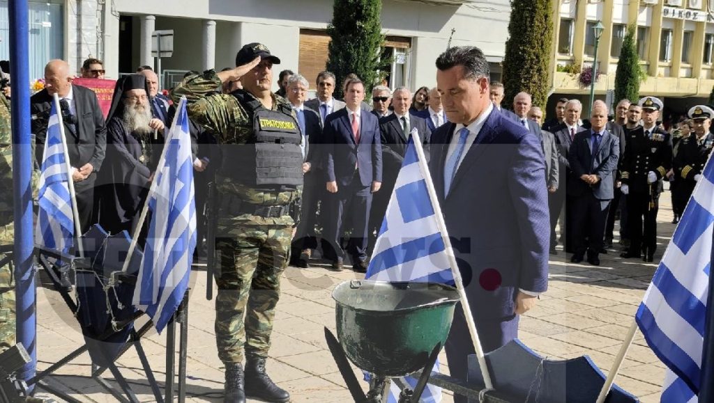 Μετά την Δοξολογία, ακολούθησε τρισάγιο στη μνήμη των πεσόντων και κατάθεση στεφάνων στο Ηρώο. Την Κυβέρνηση εκπροσώπησε ο υπουργός Υγείας Αδωνις Γεωργιάδης, ενώ τον πρόεδρο της Βουλής ο βουλευτής της ΝΔ Νότης Μηταράκης.