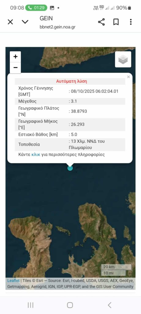 Σεισμός 3,1 Ρίχτερ σημειώθηκε πριν από λίγο νότια του Πλωμαρίου στη- Μυτιλήνη, στην περιοχή όπου χθες σημειώθηκαν καταπτώσεις βράχων.