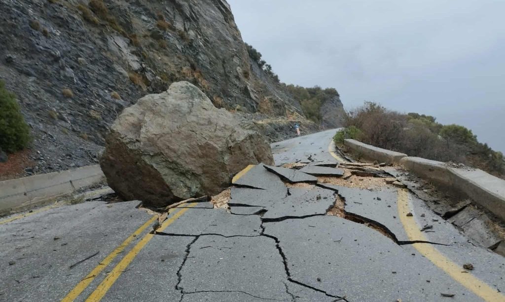 Κλειστός παραμένει ο δρόμος στη Μελίντα, καθώς το οδόστρωμα έχει καταστραφεί ολοσχερώς.