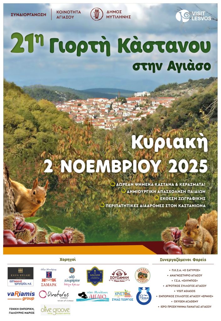 Ανακοινώθηκε το πρόγραμμα της 21ης γιορτής του Κάστανου που θα πραγματοποιηθεί την Κυριακή 2 Νοεμβρίου στην Αγιάσο της Λέσβου