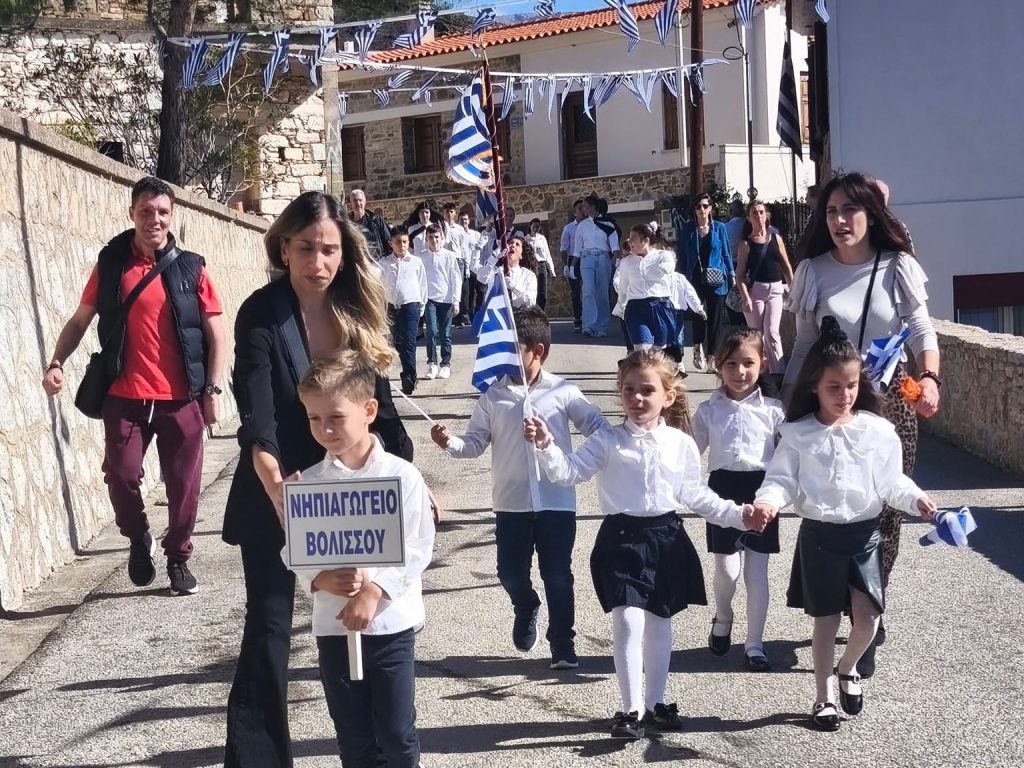 Παρελάσεις έγιναν και σε κεφαλοχώρια της Χίου, με ξεχωριστή σημασία η παρέλαση που πραγματοποιήθηκε στη Βολισσό, που έχει ακόμα ανοιχτές τις πληγές από τη μεγάλη πυρκαγιά του περασμένου Αυγούστου στην περιοχή. Η παρουσία των παιδιών του νηπιαγωγείου υπενθύμισε στους μεγάλους, μα και στις αρχές του τόπου, την ευθύνη που έχουν απέναντί τους ώστε να μπορέσουν να συνεχίσουν να πηγαίνουν σχολείο στον τόπο τους.