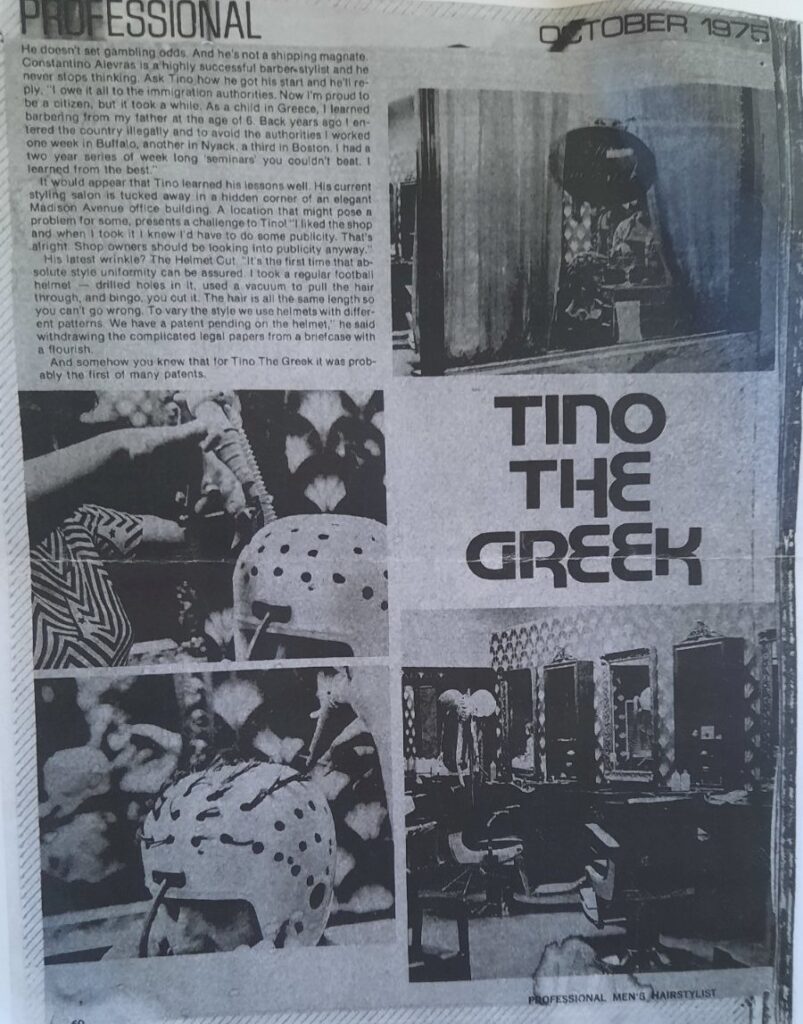 Σε ρεπορτάζ της εποχής, αναφέρεται ότι με τη χρήση ηλεκτρικής σκούπας τραβούσε τα μαλλιά από τις τρύπες που έχει το συγκεκριμένο κράνος και ασκούσε την κομμωτική του τέχνη. Σημείωνε επίσης ότι τα μαλλιά, άρα και το κούρεμά τους, αποτελούν σημαντικό στοιχείο στην εμφάνιση ενός άντρα αν κρίνει κανείς πόσο τους επηρεάζει ψυχολογικά η απώλειά τους.