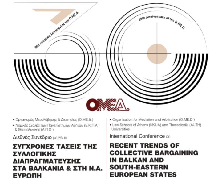 Με αφορμή τη συμπλήρωση 30 χρόνων λειτουργίας του, ο Οργανισμός Μεσολάβησης και Διαιτησίας (Ο.ΜΕ.Δ.) και οι Νομικές Σχολές του Ε.Κ.Π.Α. και του ΑΠΘ, διοργανώνουν διεθνές συνέδριο, με θέμα: «Σύγχρονες τάσεις της Συλλογικής Διαπραγμάτευσης στα Βαλκάνια & στη Ν.Α. Ευρώπη».