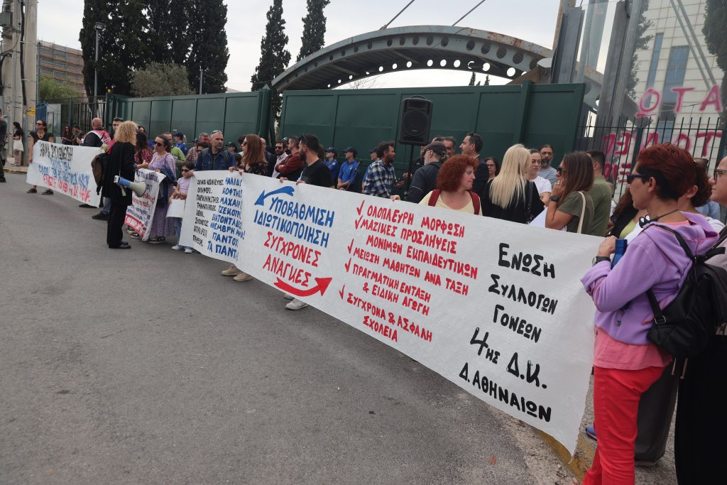 Σε εξέλιξη βρίσκεται η κινητοποίηση έξω από το υπουργείο Παιδείας, στο Μαρούσι, από γονείς και εκπαιδευτικοί που διαμαρτύρονται για την συγχώνευση των ολιγομελων τμημάτων στα σχολεία. Την κινητοποποίηση διοργανώνει η Ομοσπονδία Γονέων και Κηδεμόνων Περιφέρειας Αττικής που ζητάει την ανάκληση όλων των συμπτήξεων και την άμεση κάλυψη των κενών με διορισμούς μόνιμων εκπαιδευτικών.