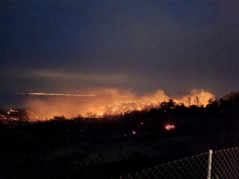 Έξι μέτωπα έχουν αναπτυχθεί σε διάφορα σημεία του χωριού, ενώ οι ισχυροί άνεμοι δεν επέτρεψαν στα εναέρια μέσα να πραγματοποιήσουν πολλές ρίψεις.