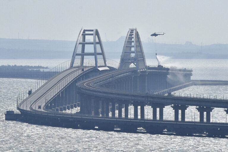 Αυτός δήλωσε, σύμφωνα με το ρωσικό πρακτορείο, ότι η γέφυρα δέχθηκε επίθεση από το, όπως το χαρακτήρισε, “τρομοκρατικό καθεστώς” της Ουκρανίας και ότι το σιδηροδρομικό τμήμα της γέφυρας δεν υπέστη ζημιές.