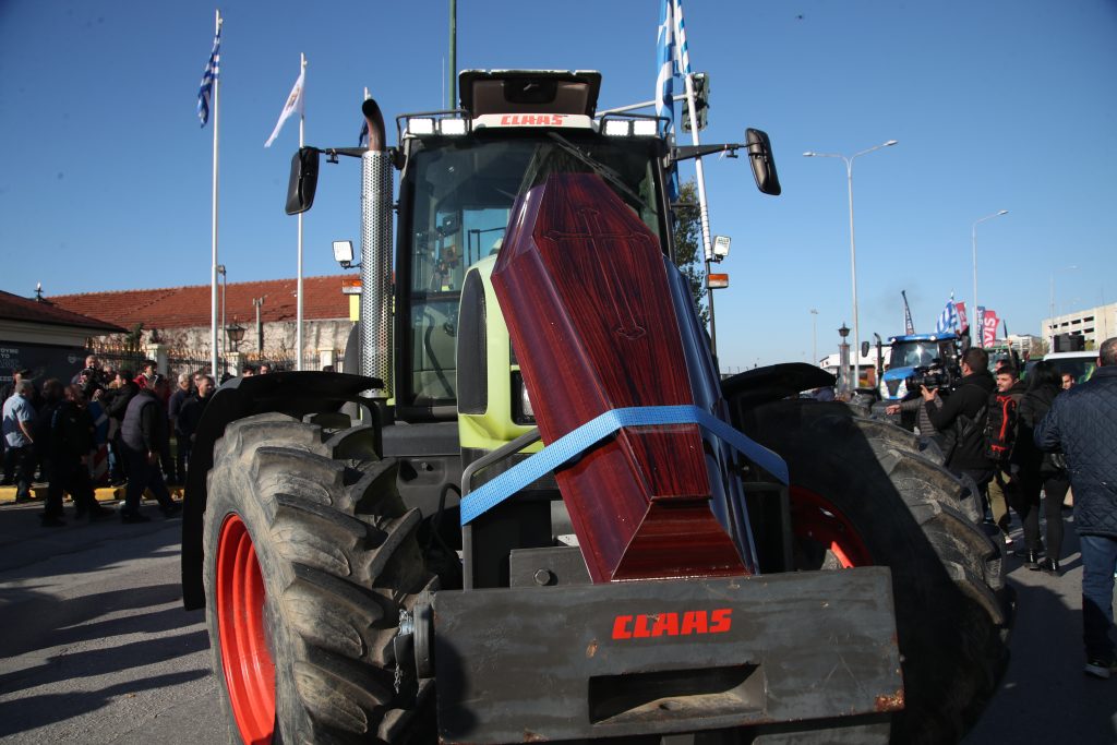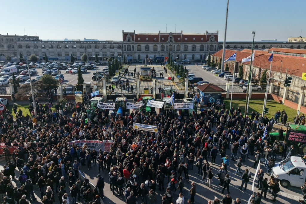 Οι αγρότες κινήθηκαν μαζικά από τα Μάλγαρα προς το λιμάνι της Θεσσαλονίκης στο οποίο μπήκαν με φέρετρα πάνω στα τρακτέρ τους. Οι αγρότες είναι συγκεντρωμένοι έξω από την είσοδο του λιμανιού μπροστά από τα ΜΑΤ, καθώς οι αστυνομικοί έχουν σφραγίσει την κεντρική είσοδο.