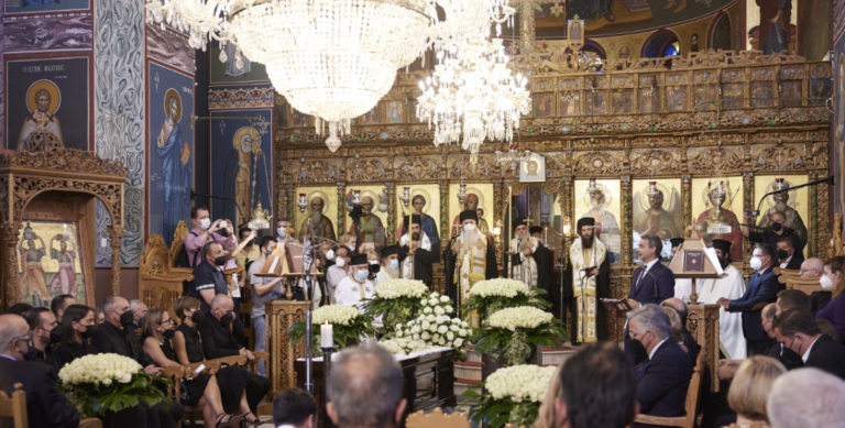 Το ύστατο χαίρε στον εθνικό ευεργέτη Νικόλαο Παπαγεωργίου, που απεβίωσε το Σάββατο σε ηλικία 92 ετών, είπαν χθες Δευτέρα 18 Ιουλίου, στον κατάμεστο μητροπολιτικό ναό Αγίου Δημητρίου Σιάτιστας, συγγενείς, φίλοι, πολιτικοί και εκπρόσωποι φορέων. Την εξόδιο ακολουθία παρακολούθησε και ο Πρωθυπουργός Κυριάκος Μητσοτάκης, μαζί με τη σύζυγό του Μαρέβα Γκραμπόφσκι, οι οποίοι εξέφρασαν τα θερμά συλλυπητήριά τους στην οικογένεια του εκλιπόντος.