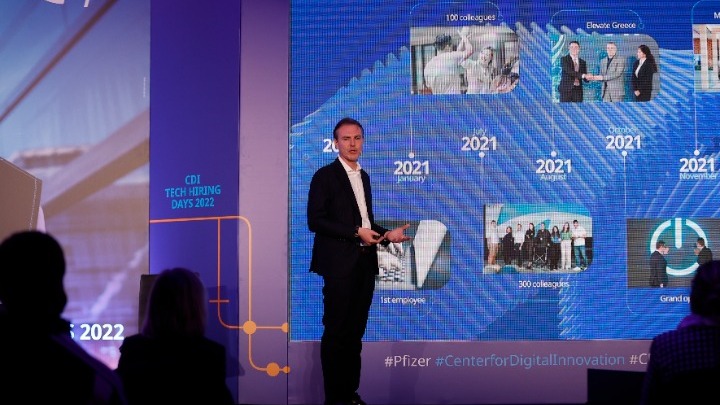 Σε περισσότερα από 200 project της Pfizer σε όλον τον κόσμο έχουν εργαστεί και εργάζονται αυτή τη στιγμή τα στελέχη του Κέντρου Ψηφιακής Καινοτομίας της Pfizer στη Θεσσαλονίκη, όπως γνωστοποίησε ο επικεφαλής του CDI, Νίκο Γκαριμπόλντι, (Nico Gariboldi), ο οποίος επισήμανε ότι η Pfizer βρίσκεται στη Θεσσαλονίκη χάρη και στο εξαιρετικό επίπεδο του ανθρώπινου ταλέντου στην πόλη, που οι προσλήψεις του αυξάνονται με ταχύ ρυθμό: η πρώτη πρόσληψη έγινε τον Μάιο του 2020 και οι εργαζόμενοι αυξήθηκαν σε 100 ήδη από τον Ιανουάριο του 2021 και σε 300 τον Ιούλιο του ίδιου έτους. Ο κ.Γκαριμπόλντι επισήμανε ακόμα ότι τα φάρμακα και τα εμβόλια της Pfizer επέδρασαν το 2021 θετικά σε πάνω από 1,4 δισεκατομμύρια άτομα, ενώ πρόσθεσε ότι, δυνητικά, άλλα 95 φάρμακα βρίσκονται αυτή τη στιγμή υπό ανάπτυξη, καθώς τρέχουν ισάριθμα ερευνητικά projects.