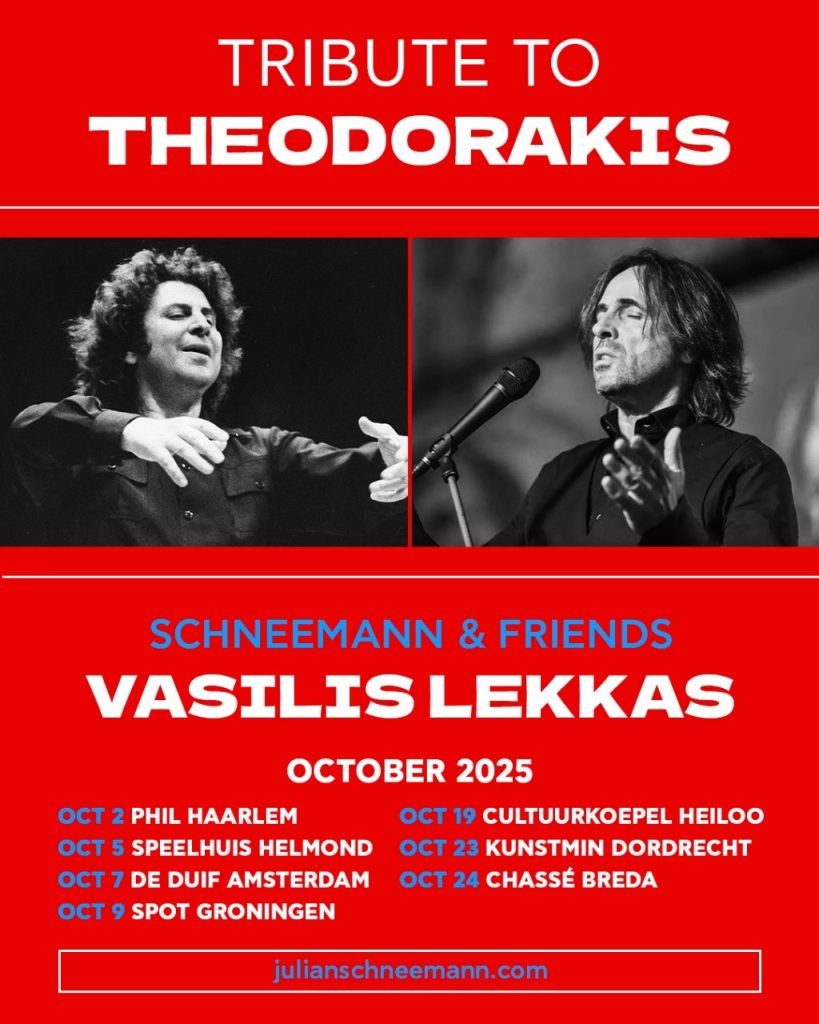 Μια ελληνική ταβέρνα, ένα βράδυ που ξεκινά αργά, ποτήρια που τσουγκρίζουν, φωνές που τραγουδούν, μουσικοί που ενώνονται. Στο Tribute to Theodorakis, που περιοδεύει στην Ολλανδία, για 7 σπάνιες παραστάσεις, το κοινό βυθίζεται σε έναν κόσμο γεμάτο ζεστασιά, αντίσταση, ελπίδα και μουσική.