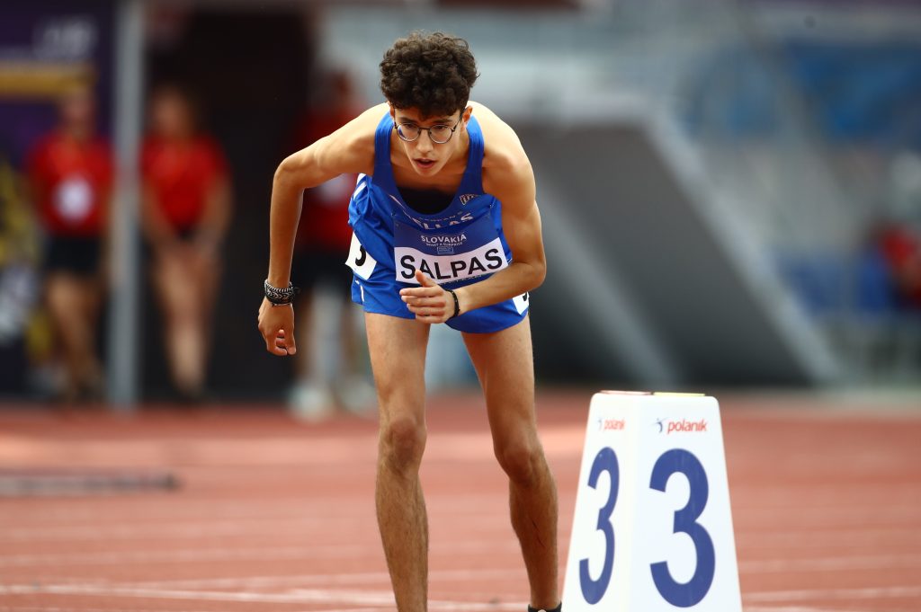 Ο Βασίλης Σαλπάς αγωνίζεται κυρίως στα 800μ. και 1500μ., με ήδη εντυπωσιακές επιδόσεις για την ηλικία του. Το ατομικό του ρεκόρ στα 800 μέτρα είναι 1:49.07 (Τρίκαλα, Ιούνιος 2025), ενώ στα 1500 μέτρα έχει πετύχει 3:53.34 (Φεβρουάριος 2025).
